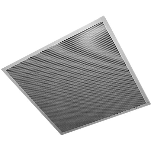 Coaxial Speaker assembly with speaker, amplifier and volume control mounted in 2' x 2' grille with integral backbox. Used for high fidelity music and voice reproduction. The speaker/amplifier assembly features an 8" speaker with a 3" tweeter, a steel grille with white baked enamel finish and a 6 watt high fidelity amplifier. A screw driver adjustable volume control is accessible through the perforated grille.