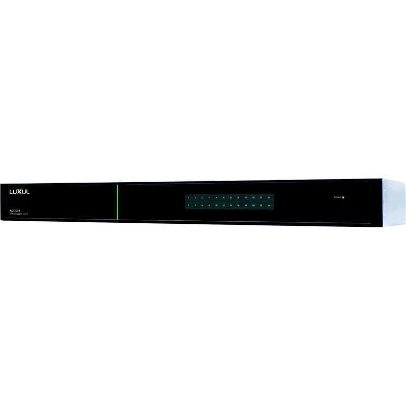The Luxul AV-Series 24-Port Gigabit Switch (AGS-1024) features rear panel ports and front facing LEDs (user selectable blue/green colors) for clean integration with AV rack systems. It provides exceptional performance, quality and reliability and is a great choice for expanding your wired network or setting up a VoIP, multimedia or extreme gaming environment. With a 48Gbps backplane, this 24-port switch lets you network up to twenty-four Ethernet-enabled devices at full-duplex, non-blocking Gigabit speeds.