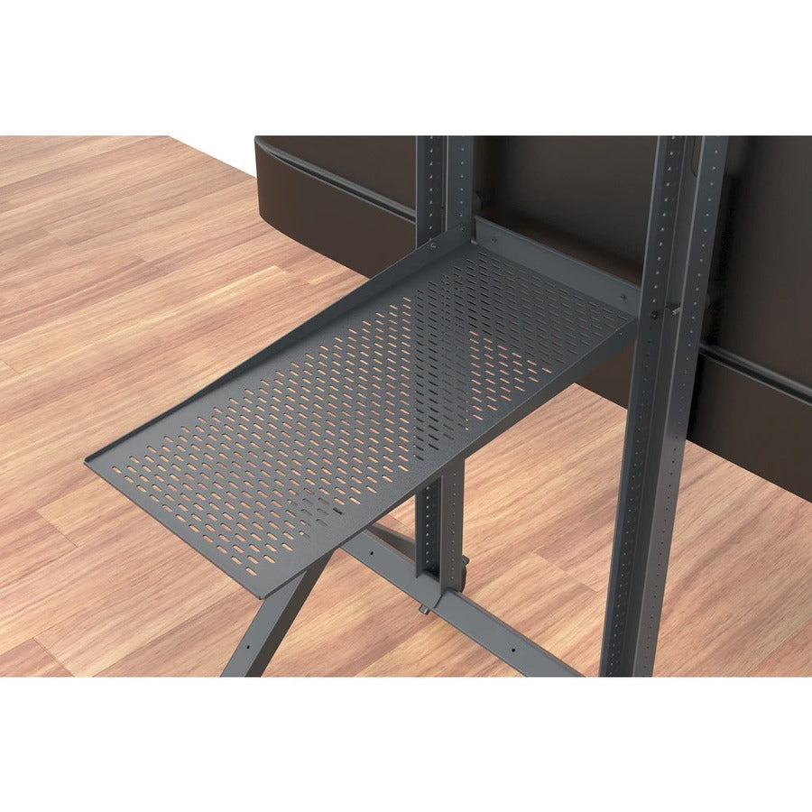 Using the Device Panel XL with the Heckler AV Cart allows for tool-less, flip-down entry to your component storage for access to the device buttons or if any adjustments need to be made. So if you need to restart your stored computer, your AV guy can just tell you to do it yourself.
