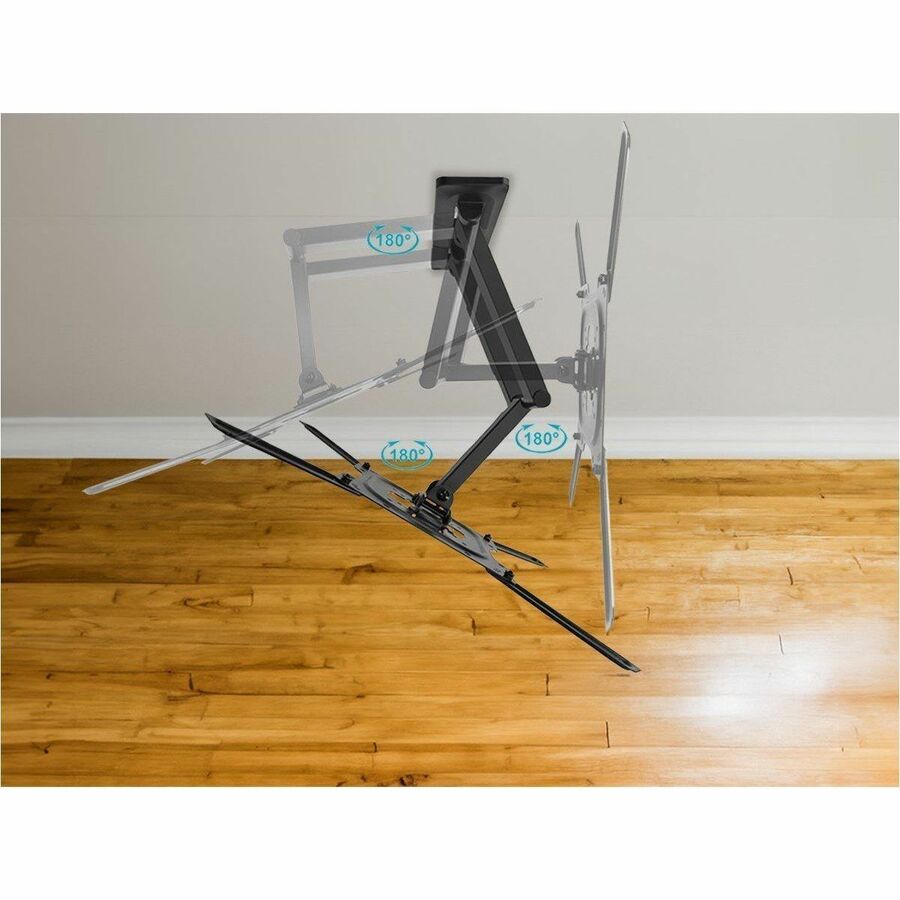 Beyond its full articulation capabilities, the Monoprice Full Motion Single-Stud TV Wall Mount Bracket offers an impressive 180-degree swivel range. You can also tilt the screen upward or downward for optimal viewing comfort, and the level rotation ensures your display remains perfectly horizontal. Whether you're relaxing on the couch, sitting on the floor, or standing in the kitchen, this wall mount provides the flexibility you need.