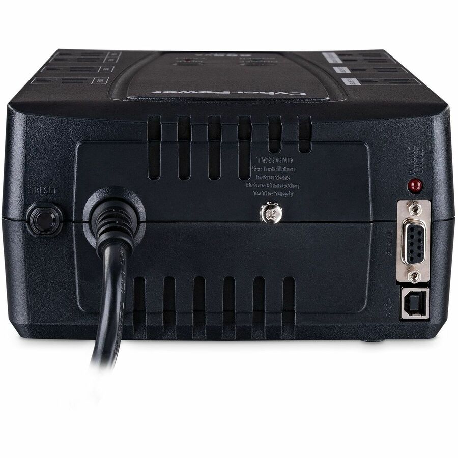The CyberPower CP685AVRG uninterruptible power supply (UPS) system provides battery backup and surge protection for lightning-induced surges and other power events that can damage electronic equipment. This UPS, with line-interactive topology, uses simulated sine wave output to deliver battery backup to power connected electronics during a utility power failure. The unit has enough runtime to perform a graceful shutdown to protect against the loss of data and damage to valuable desktop computers, workstations, networking devices, and home entertainment systems.