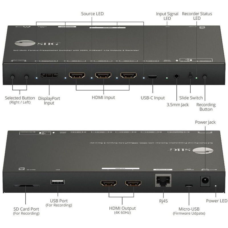 SIIG 5x3 Multi-Format 4K 60Hz Presentation Switcher & Recorder 230ft - TAA Compliant