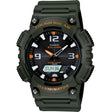 CASIO ANA-DIGI SOLAR WATCH. Utilizing a unique Self-Charging solar power system, this sporty analog/digital combination model provides plenty of functionality. A host of features such as 48-city world time, 5 alarms, stopwatch and dual countdown timers make this a versatile timepiece for almost any sport outing. Green resin band, solar digital analog watch with black & orange face. 100M water resistant. World time (48 city). Dual countdown timers (for interval training).