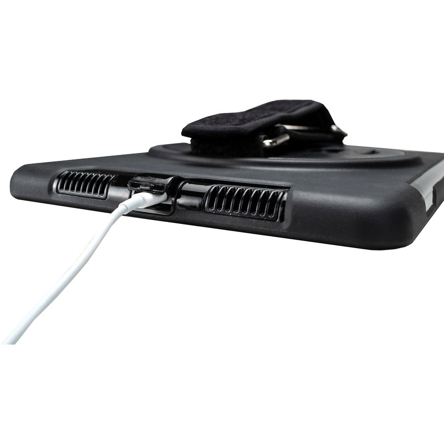 Diese schützende Tablet-Hülle schützt Ihr iPad vor Stößen und Stürzen. Der robuste Rahmen bietet starken Aufprallschutz ohne Kompromisse bei der Benutzerfreundlichkeit. Eine zusätzliche Silikonhülle bietet zusätzlichen Schutz für Ihr Gerät. Die Hülle ermöglicht Ihnen uneingeschränkten Zugriff auf die Anschlüsse, Tasten und Buchsen Ihres iPads. Die Hülle verfügt außerdem über eine verstellbare Handschlaufe und einen um 360 Grad drehbaren Griffring für komfortables Halten im Hoch- und Querformat. Ein ausklappbarer Ständer ermöglicht eine schnelle und einfache Aufstellung auf dem Tisch.