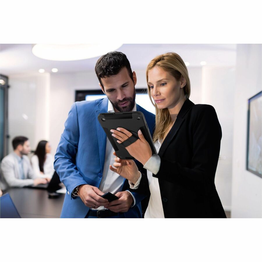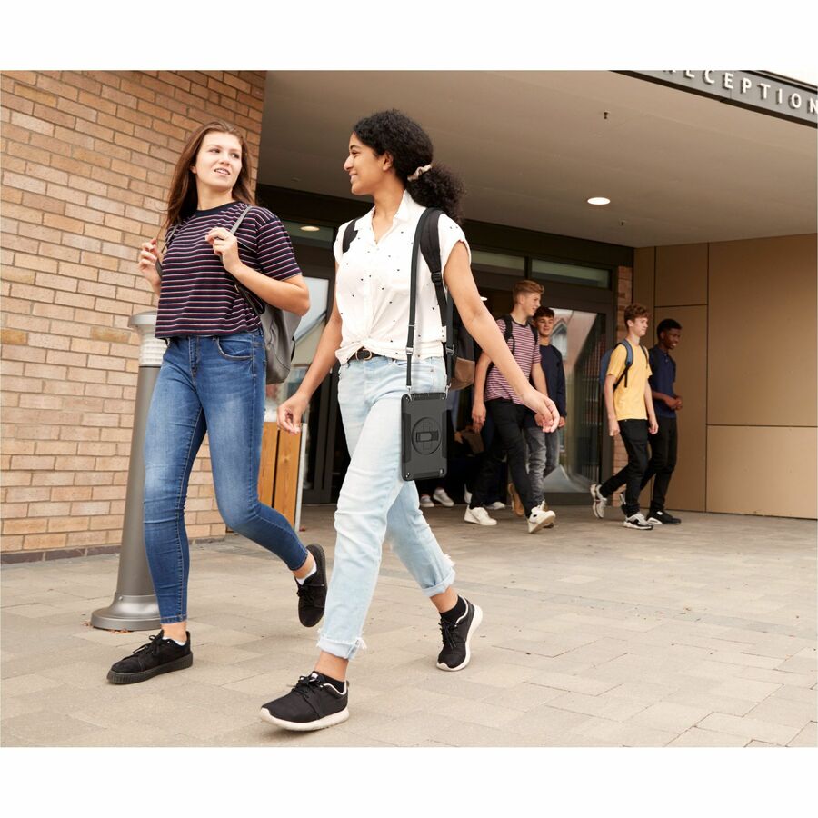 Diese elegante, tragbare Tablet-Hülle bietet außergewöhnliche Funktionalität und schützt Ihr Samsung A7 Lite. Sie ist ein Muss für Messen, Konferenzräume, Klassenzimmer, Restaurants, Arztpraxen und alle Orte, an denen Sie einen freihändigen Ständer für Arbeit und Präsentationen benötigen. Die stromlinienförmige Hülle verfügt über einen integrierten, klappbaren Ständer für eine einfache Tischaufstellung. Drehen Sie den Ständer, um Ihr Gerät im Hoch- oder Querformat zu verwenden. Drücken Sie den Ständer ein und greifen Sie mit der Hand in den gepolsterten, verstellbaren Gurt, um schnell in die Hand zu wechseln. Die Hülle verfügt über Öffnungen für alle Kameras, Anschlüsse und Buchsen. Kompatibel mit dem Samsung Galaxy A7 Lite.