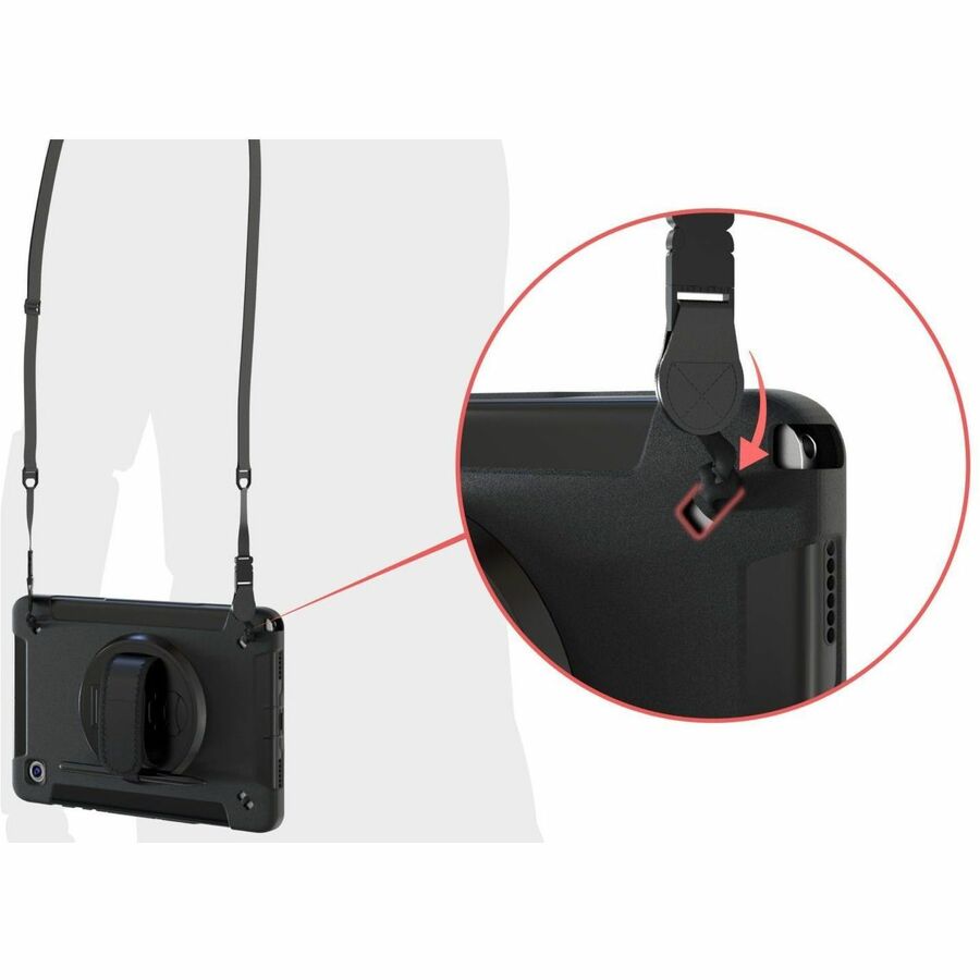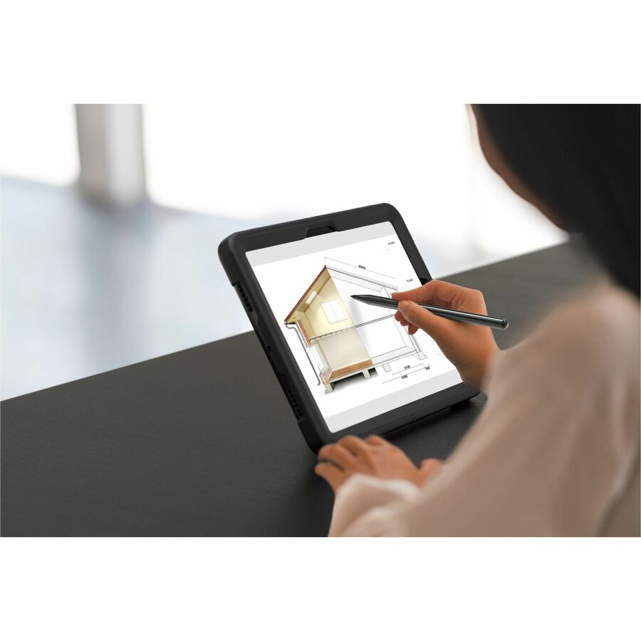 Diese elegante, tragbare Tablet-Hülle bietet außergewöhnliche Funktionalität und militärischen Schutz für Ihr Samsung Galaxy Tab A8. Mit einem verstellbaren, gepolsterten Handgriff und einem drehbaren Ständer ist sie ein Muss für Messen, Konferenzräume, Klassenzimmer, Restaurants, Arztpraxen und alle Orte, an denen ein schneller Wechsel zwischen Hand- und Freisprechfunktion erforderlich ist. Die Hülle verfügt über Öffnungen für alle Kameras, Anschlüsse und Buchsen sowie eine praktische Staubschutzhülle für den Ladeanschluss. Bewahren Sie einen S Pen oder einen kompatiblen Stift im Schlitz auf der Rückseite der Hülle auf.
