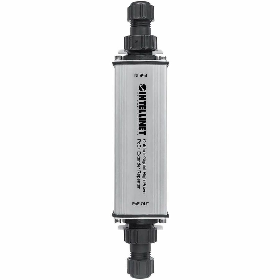 Der Intellinet Network Solutions Outdoor Gigabit High-Power PoE+ Extender Repeater (561211) verlängert die Verbindungsdistanz von einer PoE-Quelle zu einem Ausgangsgerät über Cat5e- oder Cat6-Kabel auf bis zu 100 m. Durch Kaskadierung von bis zu fünf Extendern lassen sich noch größere Entfernungen überbrücken. Der PoE+ Extender Repeater benötigt keine zusätzliche Stromversorgung, da er den benötigten Strom aus dem PoE-Eingang bezieht.