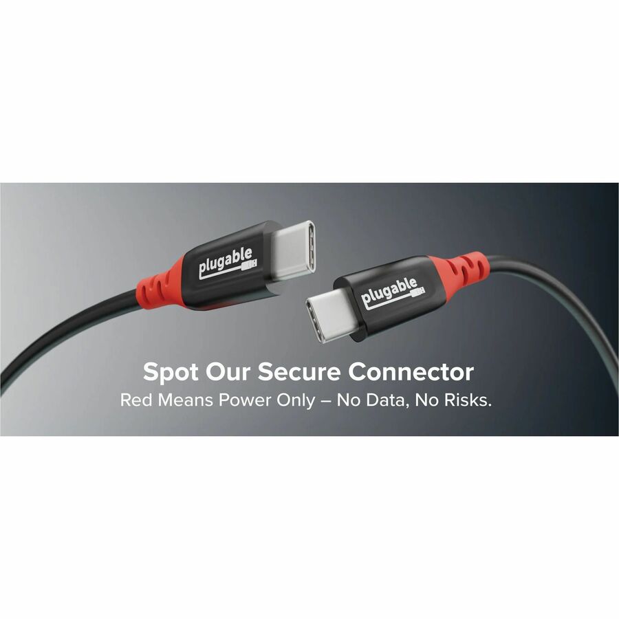 - Get Charged Up: Meet Plugable's 2m (6.5ft) 240W USB-C to USB-C cable designed exclusively for charging. With no data lines for safer use in public spaces and protection against juice jacking. Delivers clean, reliable power to laptops, tablets, and phones. Includes a cable tag so you always know the specs, plus a strap for easy cable management