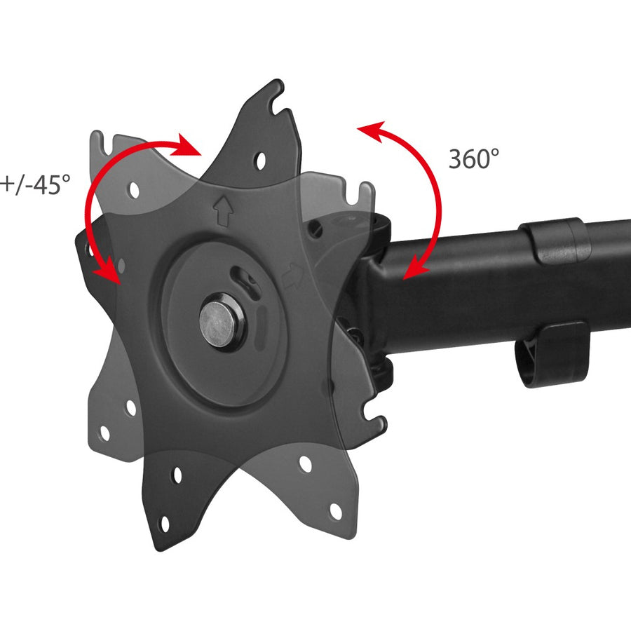 • Die um 360° drehbare VESA-Platte unterstützt die Monitorausrichtung im Hoch- oder Querformat, Gelenk-/Klapparme schaffen zusätzlichen Platz und lassen sich auf bis zu 15 Zoll ausziehen.