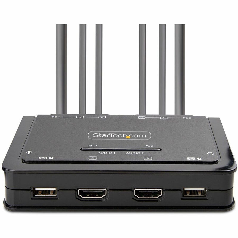 StarTech.com 2-Port Dual-Monitor HDMI Kabel KVM Switch, 4K 60Hz, Kompakter KVM mit 5ft/1,5m integrierten Hostkabeln, Bus Powered