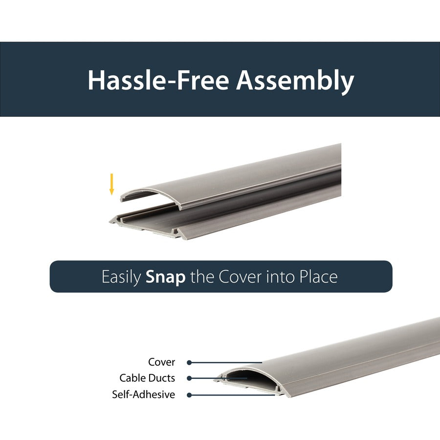 Dieser 1,88 m lange Bodenkabelkanal verfügt über eine abgerundete Oberseite mit einem Schnappdeckel, der einfachen Zugriff auf die Kabel ermöglicht und gleichzeitig für ein ordentliches, aufgeräumtes Erscheinungsbild sorgt.