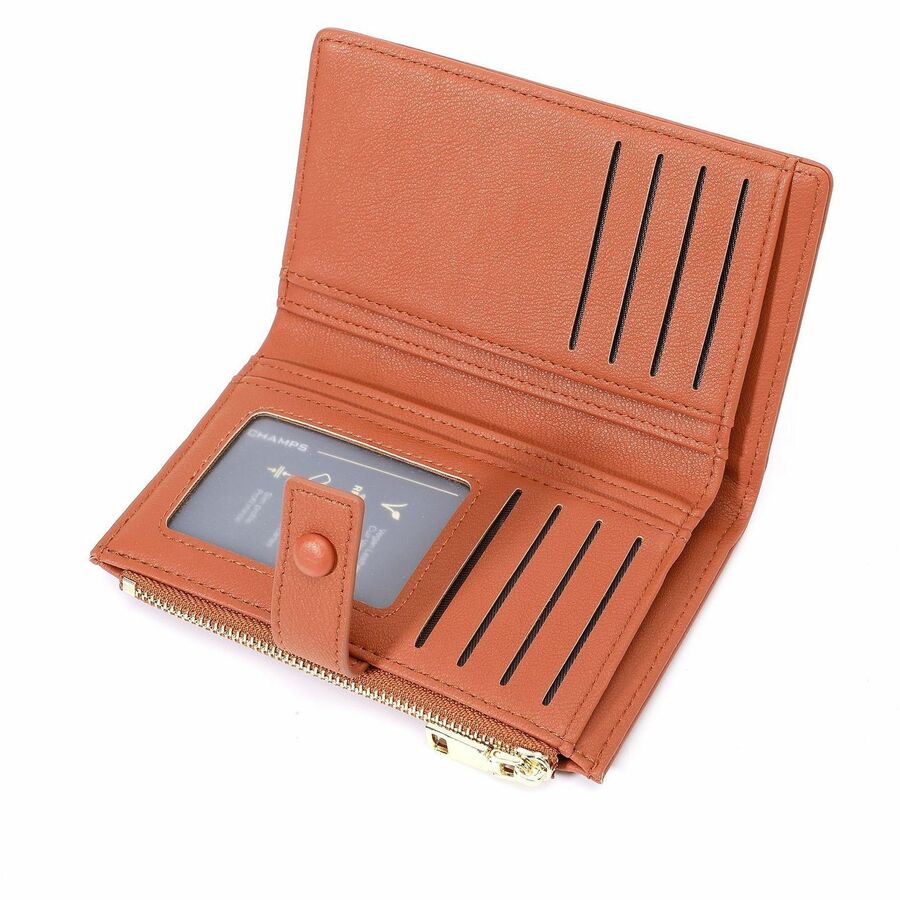 Das Champs RFID-Portemonnaie aus der Iconic-Kollektion vereint Stil und Sicherheit in einem raffinierten Design und ist aus hochwertigem Kunstleder gefertigt. Das RFID-Schutzfutter schützt Ihre sensiblen Daten, während der Druckknopfverschluss vorne einfachen Zugriff ermöglicht. Im Inneren finden Sie sieben Kreditkartenfächer, ein Geldscheinfach und vier zusätzliche Steckfächer für Erinnerungsstücke. Ein transparentes Sichtfenster bietet schnellen Zugriff auf Ihren Ausweis, und ein seitliches Reißverschlussfach mit goldenem Metallreißverschluss und dekorativen Laschen verleiht ihm einen Hauch von Eleganz. Mit den Maßen 9,5 x 14,6 cm ist es kompakt und robust – perfekt für den täglichen Gebrauch. Dieses Portemonnaie ist ein treuer Begleiter und vereint Funktionalität mit raffinierter Ästhetik.