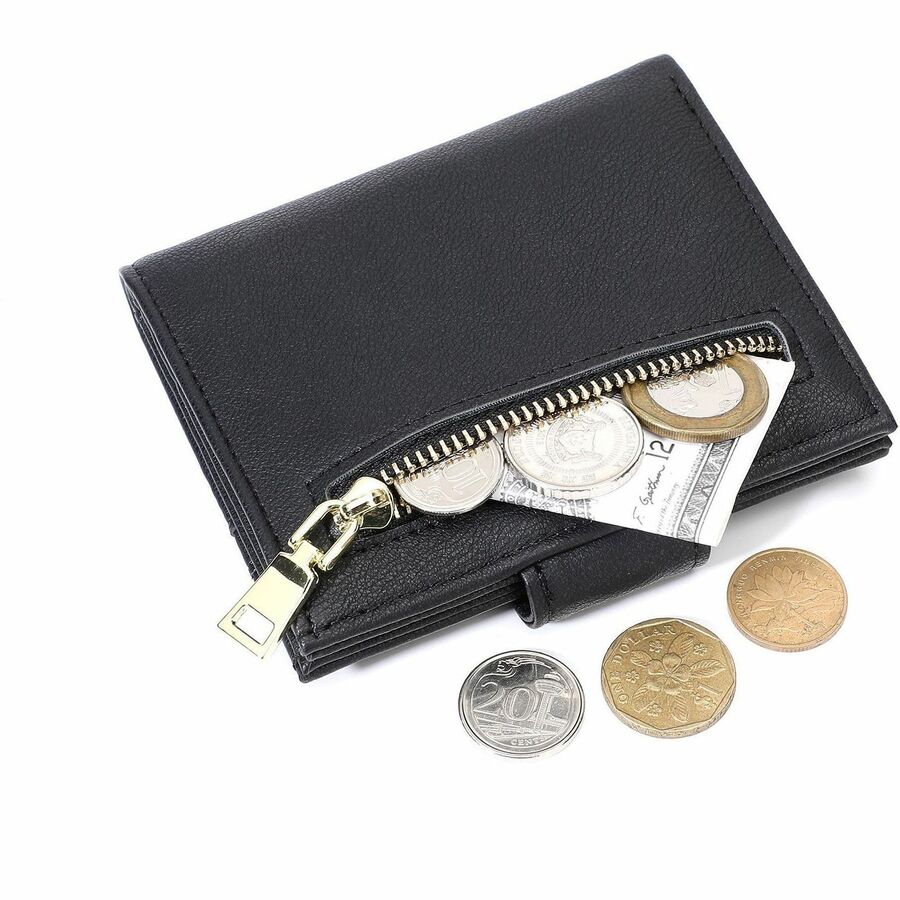 - Druckknopfverschluss vorne, RFID-Schutzfutter, Geldscheinfach, 9 Kreditkartenfächer