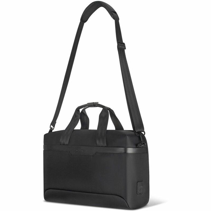 Die Laptoptasche aus der Onyx-Kollektion ist unsere moderne Interpretation der traditionellen Laptoptasche. Sie wurde für den mobilen Berufstätigen entwickelt und eignet sich perfekt für den sicheren Transport von Laptop, Dokumenten und Arbeitsutensilien. Das wasserabweisende Nylonmaterial sorgt für Langlebigkeit und Stil. Diese elegante und funktionale Tasche erfüllt die Anforderungen des modernen Lebens und verfügt über ein sicheres RFID-Fach zum Schutz Ihrer sensiblen Daten sowie verstellbare Air-Mesh-Schultergurte für höchsten Tragekomfort. Das gepolsterte 15,6-Zoll-Laptop- und Tablet-Fach mit Kompressionsgurt bietet optimalen Schutz für Ihre Geräte. Der integrierte USB-C-Ladeanschluss und das Kabel sorgen dafür, dass Sie auch unterwegs immer und überall in Verbindung bleiben. Befestigen Sie Ihre Laptoptasche mit dem Trolley-Gurt an Ihrem Koffer und schützen Sie Ihre Wertsachen in einem versteckten Reißverschlussfach dahinter. Ein abnehmbarer Schlüsselanhänger sorgt dafür, dass Sie Ihre Schlüssel nie wieder verlieren. Diese Tasche vereint Stil und Funktionalität und ist die ideale Wahl für alle, die eine traditionelle Laptoptasche mit modernem Touch suchen.