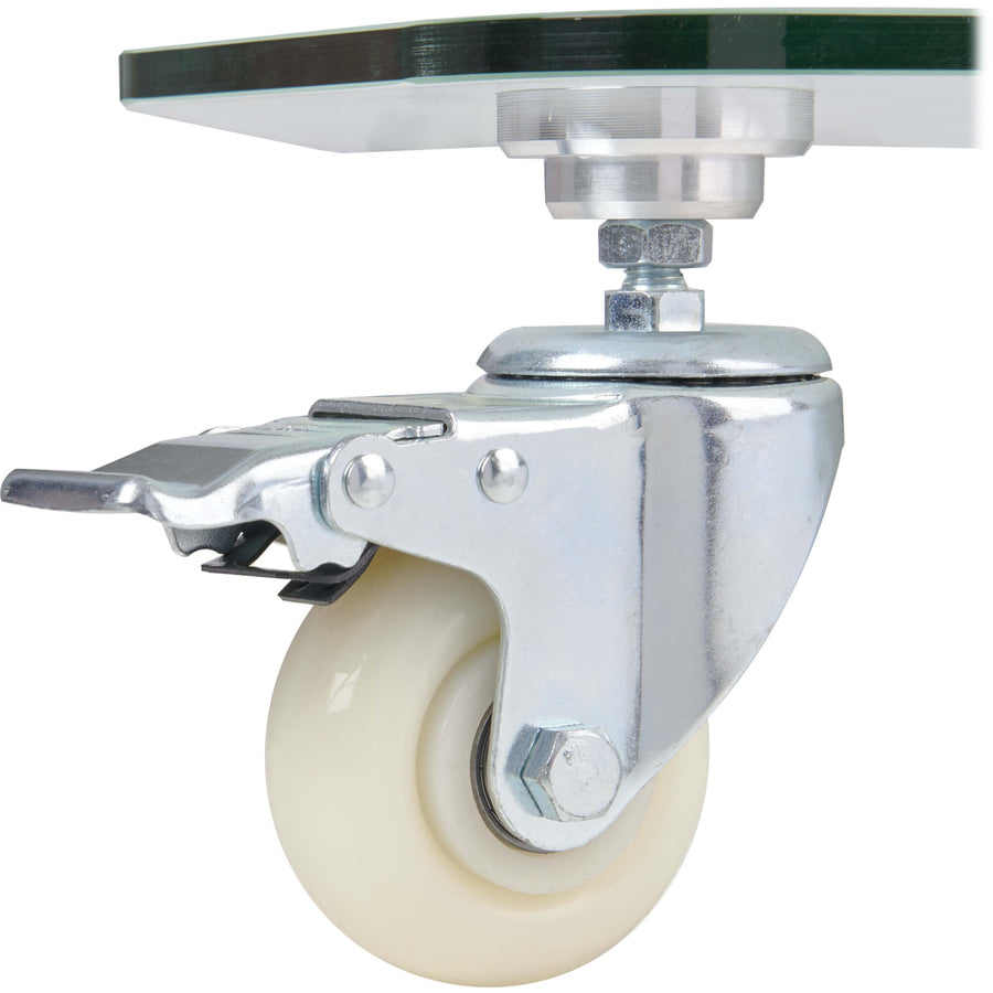 - Feststellbare 3-Zoll-Lenkrollen ermöglichen sanftes Rollen und lassen sich feststellen, um den Wagen im Ruhezustand zu sichern.