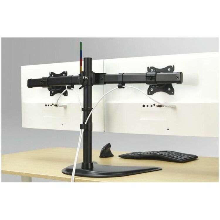 Verfügt über eine Tischsockelhalterung, sodass keine Löcher gebohrt oder Halterungen am Schreibtisch festgeklemmt werden müssen. Gleichzeitig werden der Zeit- und Arbeitsaufwand für die Einrichtung einer Workstation mit zwei Monitoren erheblich reduziert.