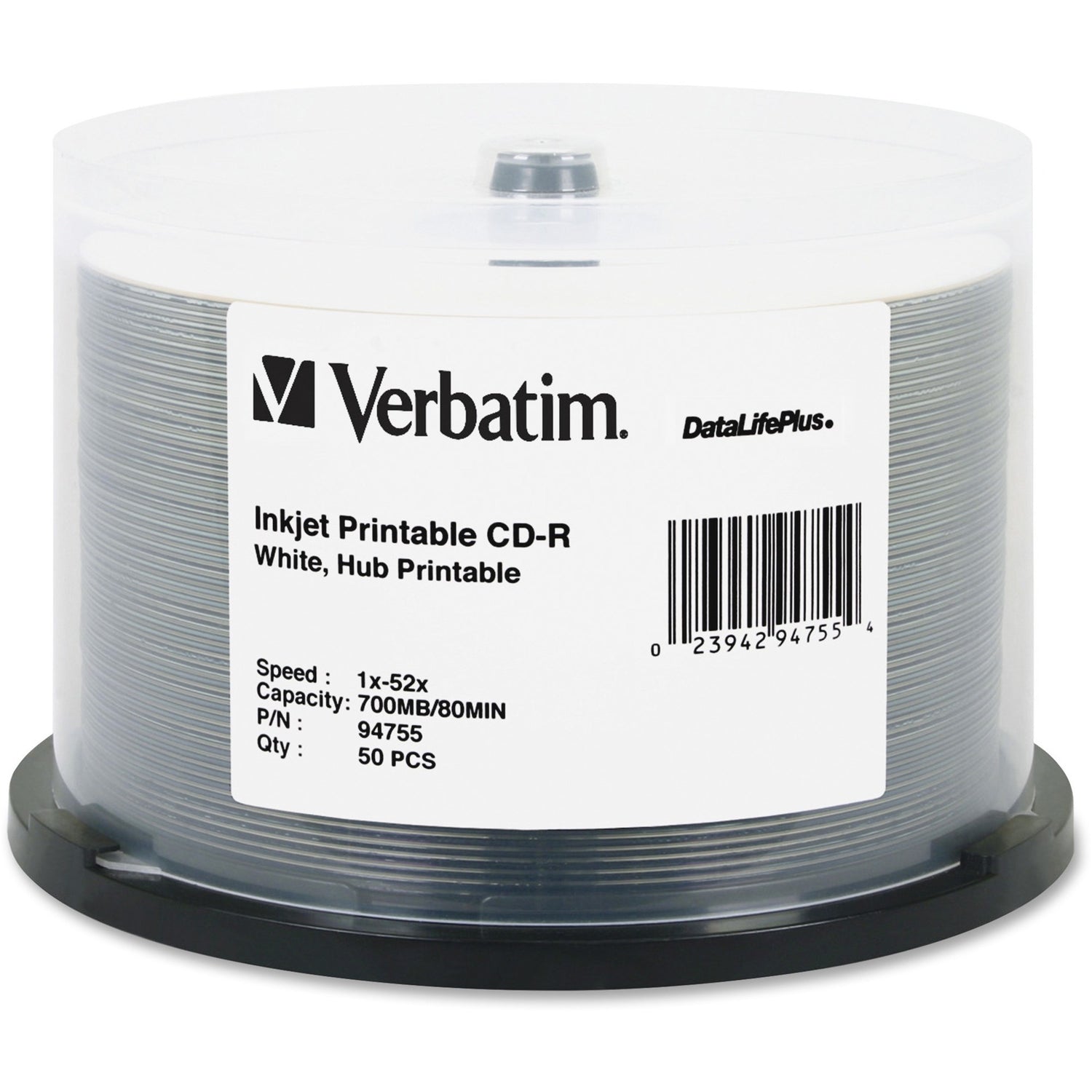 Verbatim CD-R 700 MB 52X DataLifePlus, weiß, Tintenstrahldrucker, Hub bedruckbar, 50er-Spindel