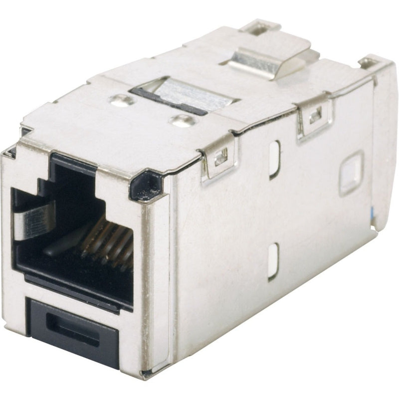 Kategorie 6, RJ45, 8-polig, 8-adrig, universell geschirmtes schwarzes Modul mit integrierter Abschirmung.