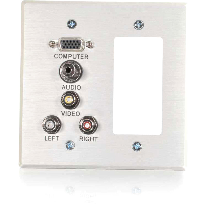 C2G VGA, 3,5 mm Audio, Composite Video und RCA Stereo Audio Pass Through Doppel-Wandplatte mit einem dekorativen Ausschnitt – gebürstetes Aluminium