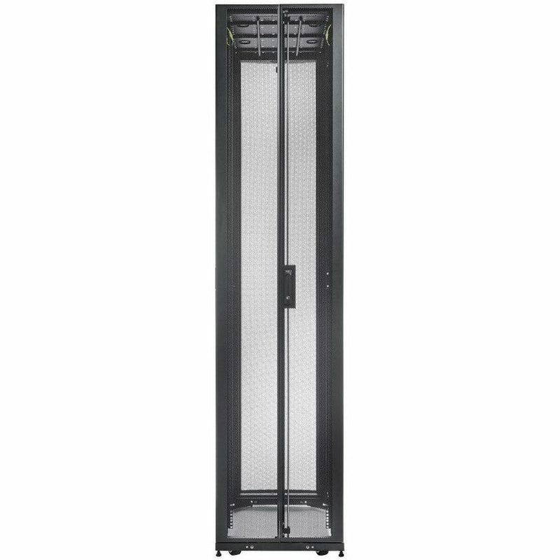 Dieses 52-HE-Server-Rack wird komplett montiert geliefert und ermöglicht so eine schnelle und einfache Inbetriebnahme. Die vorinstallierten (und abnehmbaren) Rollen ermöglichen das Manövrieren auf ebenen, glatten und stabilen Flächen und durch eine Standardtür mit 2,1 m Höhe. Dort kann es durch Verstellen der (ebenfalls abnehmbaren) Nivellierer stabilisiert werden. Die Montageschienen vorne und hinten sind für Standard-Rack-Geräte mit einer Tiefe von bis zu 940 mm geeignet. Werkzeuglose 0-HE-Montageschienen ermöglichen die schnelle Installation von bis zu vier kompatiblen PDUs und vertikalen Kabelmanagern.