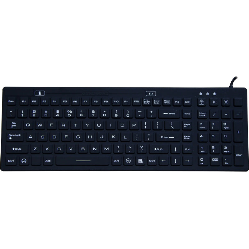 - Eine speziell entwickelte Tastatur mit Hintergrundbeleuchtung und Membran, starr und robust, wasserdicht und waschbar, aus Silikon