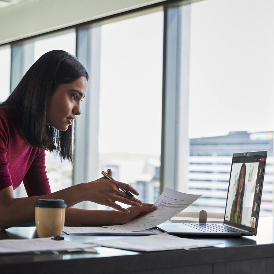 Verbinden Sie sich mit anderen auf persönlichere Weise mit den im HP EliteBook 845 integrierten Konferenzfunktionen.