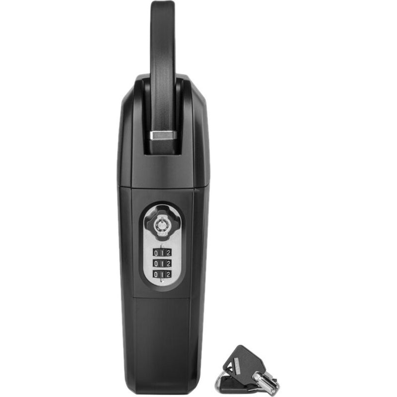 - Der doppelte Schließmechanismus ermöglicht Ihnen die Verwendung des herkömmlichen Schlüsselschlosses oder des praktischen, zurücksetzbaren Drei-Ziffern-Kombinationsschlosses (mit 1.000 möglichen Kombinationen).