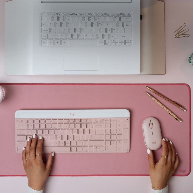 Der geringere Platzbedarf der Kombination bedeutet, dass Sie auf engstem Raum auf dem Schreibtisch arbeiten können und Ihre Maus dennoch bequem in Reichweite haben.