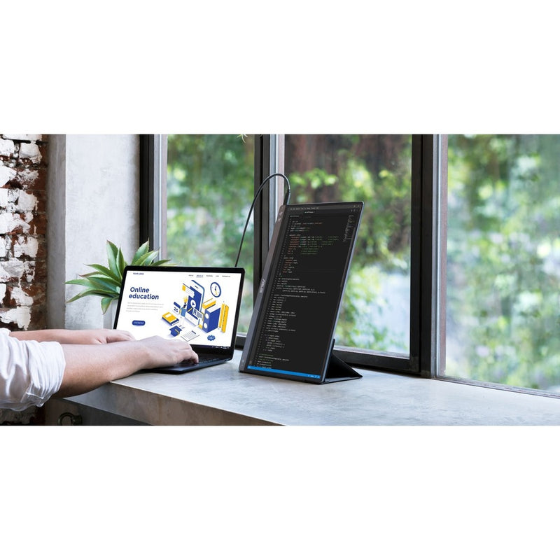 Der ZenScreen™ MB14AC eignet sich ideal als Zweitmonitor für Präsentationen mit zwei Monitoren und hilft Ihnen dank seiner Vielseitigkeit, unterwegs effizienter zu arbeiten. Mit nur 590 g wiegt er kaum und passt mit seinem ultraschlanken 9-mm-Profil problemlos in jede Reisetasche.