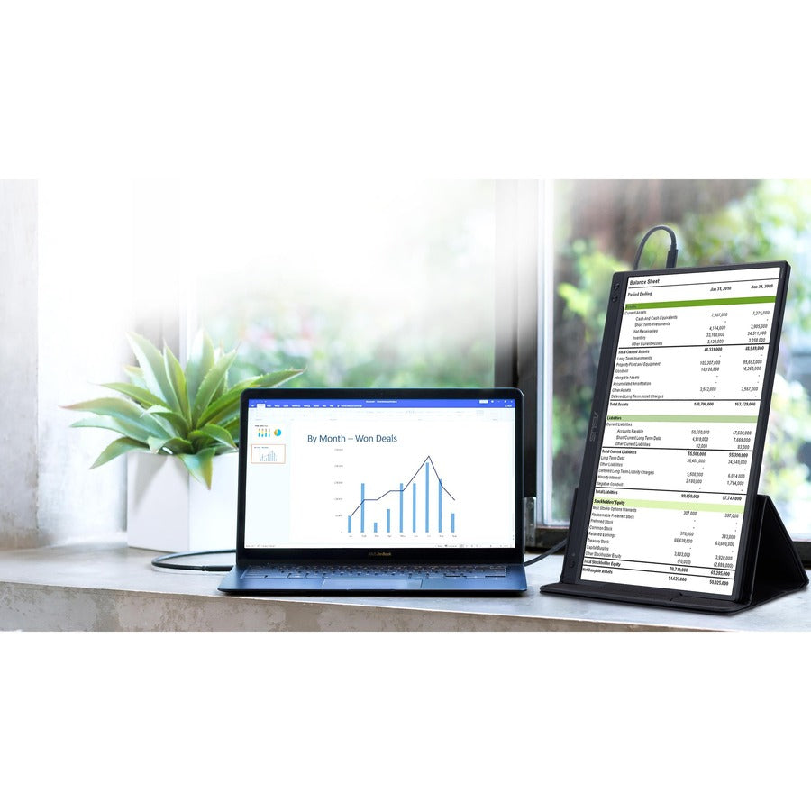 ASUS ZenScreen™ ist ideal für unterwegs. Dieses elegante, tragbare Display ist leicht und schlank, sodass es problemlos in jede Reisetasche passt und jederzeit und überall produktiv sein kann.