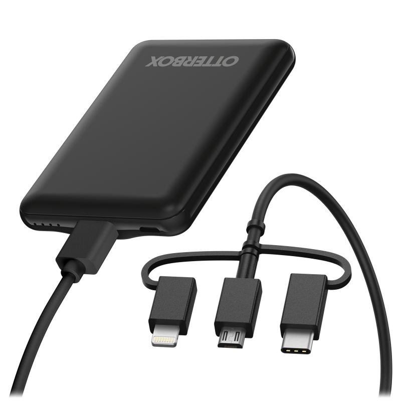 Otterbox - Mobiles Ladeset Power Bank 5000 mAh und 3-in-1-Kabel 1 m - Schwarz ist auf Lager und wird versandt, sobald es wieder verfügbar ist