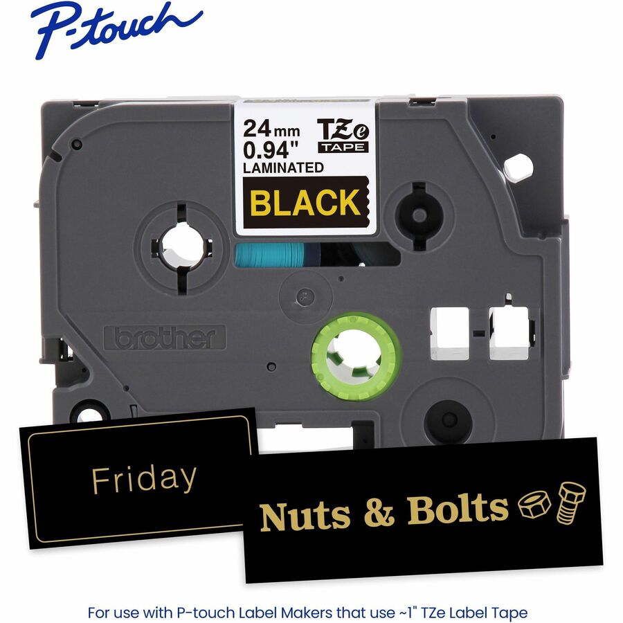 Brother GOLD BLACK TAPE 24MM, 16 Inch Display, 15/16 Width Rectangle Thermal Transfer