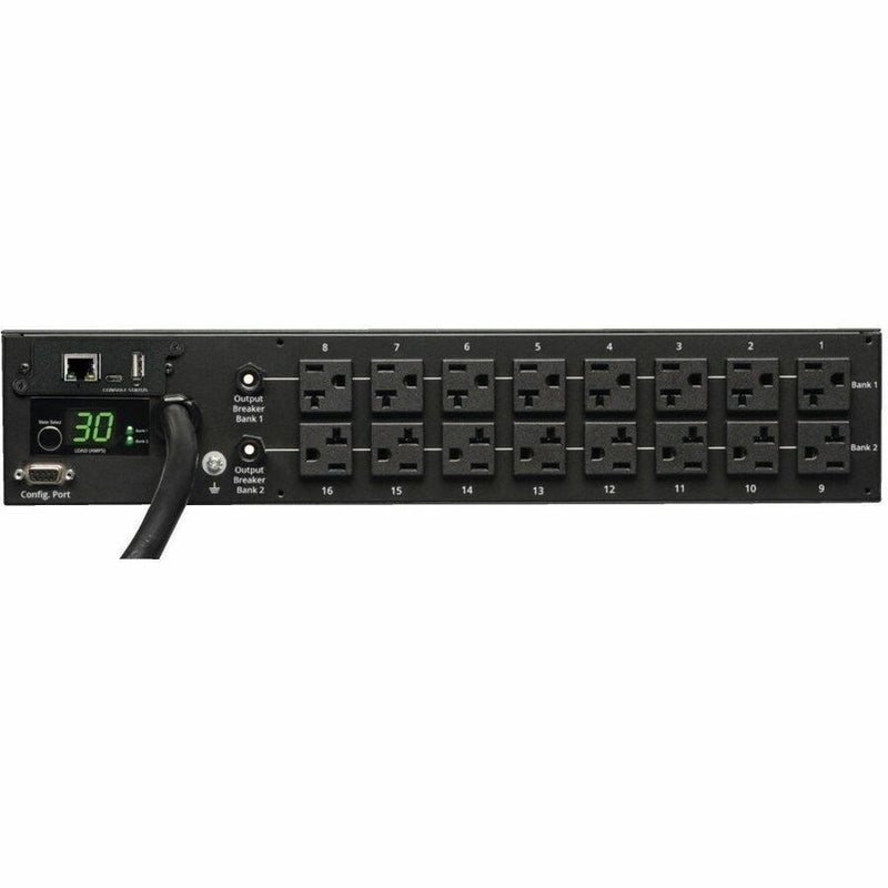 Der PDUMNH30 von Tripp Lite verteilt und überwacht einphasigen 120-V-Strom an angeschlossene Rack-Geräte in Rechenzentren, Netzwerkschränken, Serverräumen, Computerräumen und anderen Anwendungen, die netzwerkfähigen Strom benötigen. Die integrierte Netzwerkschnittstelle ermöglicht die Echtzeit-Fernüberwachung von Spannung, Frequenz und Lastpegeln, um Überlastungen und damit teure Ausfallzeiten zu vermeiden. Er verfügt über 16 NEMA 5-15/20R-Steckdosen und ein 3 Meter langes Netzkabel mit NEMA L5-30P-Stecker, das die PDU an eine kompatible Wechselstromquelle, einen Generator oder ein geschütztes USV-System anschließt.