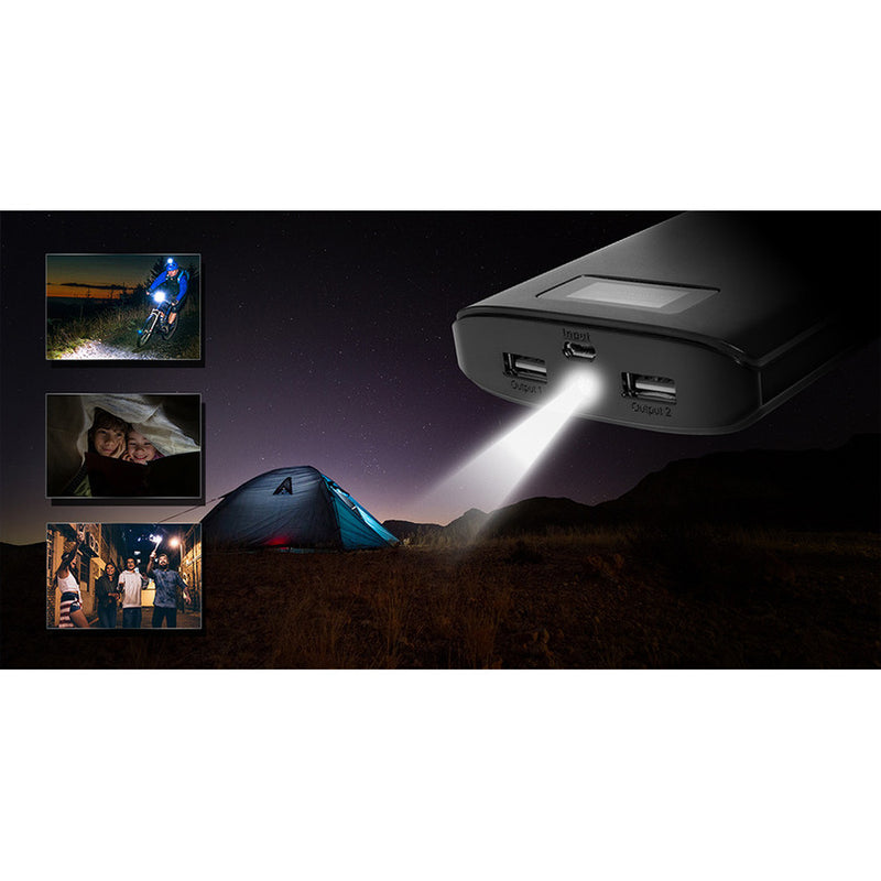 Die P20000D ist Ihr idealer Begleiter auf Reisen und verfügt über eine integrierte, leistungsstarke LED-Taschenlampe, die Ihnen bei Bedarf hilft, den Weg zu finden. Ob auf Campingplätzen oder in Parkhäusern – die LED-Taschenlampe ist ein praktisches Feature und mit 20000 mAh eine zuverlässige und langlebige Lichtquelle, auf die Sie sich mit nur einem Klick verlassen können.