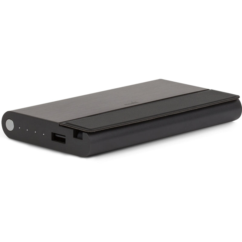 Tragbarer Akku Moshi IonBank 10K mit integrierten Kabeln, Lightning und USB, ultradünn, Schnellladefunktion, Konstruktion aus veganem Leder und Aluminium