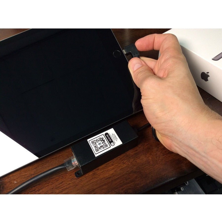 Perfekt für Konferenzräume, Kioske und überall dort, wo Sie ein digitales Display benötigen. Mit nur einem Ethernet-Kabel können Sie jetzt Strom und Daten mit hoher Geschwindigkeit auf Ihr iPad übertragen – und das bis zu 100 Meter weit! Dieser Power-over-Ethernet-Adapter (PoE) liefert sowohl 5 Volt und 12 Watt Dauerstrom als auch kabelgebundene 10/100-Daten an das iPad.