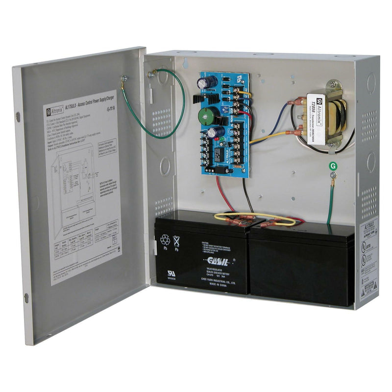 Das AL175ULX ist ein leistungsbegrenztes Netzteil/Ladegerät, das einen 115-VAC-/60-Hz-Eingang in zwei einzeln PTC-geschützte 12-VDC- oder 24-VDC-Ausgänge umwandelt (siehe Spezifikationen). Es ist für Anwendungen vorgesehen, die eine UL-Zulassung für Zutrittskontrollsysteme (UL 294) erfordern, sowie für Anwendungen, die eine Schnittstelle zu Brandmeldezentralen benötigen.