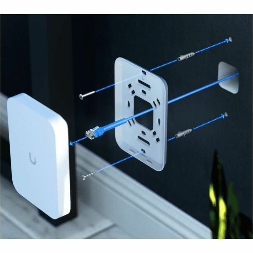 An der Wand montierter WiFi 7 AP mit 4 räumlichen Streams und einem integrierten 2,5-GbE-PoE-Switch, konzipiert für das Gastgewerbe.