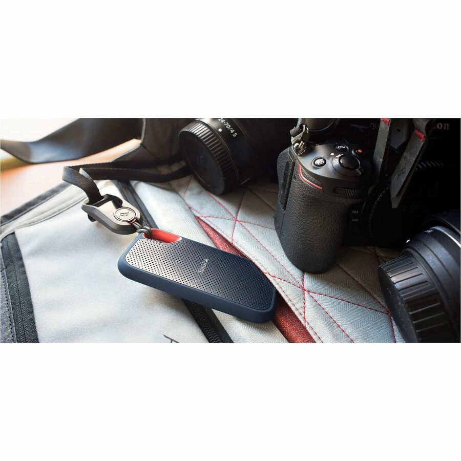 Befestigen Sie das Laufwerk mit der praktischen Karabinerschlaufe an Ihrer Gürtelschlaufe oder Ihrem Rucksack und genießen Sie unterwegs zusätzliche Sicherheit.