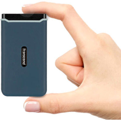 Das ESD350C von Transcend ist ein tragbares Solid-State-Laufwerk mit einem eleganten, marineblauen Silikonkautschukgehäuse, das robust und stoßfest ist, einer USB 3.1 Gen 2-Schnittstelle für unübertroffene Übertragungsraten und einem USB Type-C-Anschluss.