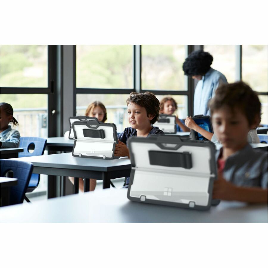 Schützen Sie Microsoft Surface Pro 9 Tablets vor Schäden durch Stürze, Stöße und Kratzer mit der passgenauen Extreme Shell-Hülle. Robuste, stoßdämpfende Stoßfänger umgeben eine schlagfeste, transparente Polycarbonat-Abdeckung; verstärkte Ecken erhöhen die Stoßdämpfung in diesem empfindlichen Bereich und sorgen so für zusätzlichen Aufprallschutz. Die präzise Passform ermöglicht die volle Nutzung des Ständers und aller Funktionen.