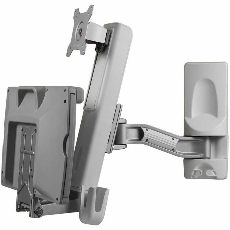 Diese wandmontierte Workstation ermöglicht die Montage eines Flachbildschirms und seiner Peripheriegeräte in einem Gerät. Unsere revolutionären Scharniermodule ermöglichen das Drehen, Schwenken und Neigen von Bildschirmen. Die Tastaturablage lässt sich platzsparend umklappen und ausfahren. Die Workstation unterstützt Monitore bis zu einem Gewicht von 8 kg und einer Größe von höchstens 81 cm. Sie verfügt über ein Kabelführungssystem für die Wandmontage zur Verbindung mit der CPU. Für die Halterung ist ein geeigneter Wandsockel erforderlich. Die Gelenkhalterungen von Amer unterstützen eine Vielzahl von Monitorgrößen, darunter: Bis zu 81 cm Breitbild (16:9), Bis zu 81 cm Ultrabreitbild (21:9) und Bis zu 81 cm Curved Monitor (1800R).