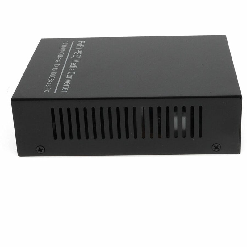 Dieser Medienkonverter konvertiert 10/100/1000Base-TX (RJ-45) über einen offenen SFP-Port in 1000Base-X. Der offene SFP-Port ermöglicht die individuelle Anpassung zwischen SX-, LX- und BX-Verbindungen. Dieser Medienkonverter ermöglicht eine kostengünstige Konvertierung von 10/100/1000Base-TX (RJ-45) in 1000Base-X und erweitert die Netzwerkreichweite über die 100-m-Grenze von Kupferkabeln hinaus. Dieser AC/DC-betriebene PoE+-Medienkonverter ist ein Power Sourcing Equipment (PSE), das die über eine Glasfaserverbindung übertragenen Daten mit einer 48-V-Stromversorgung (oder einer anderen Spannung) (max. 30 Watt) kombiniert und IEEE802.3at-betriebene Geräte (PD) über CAT5- und höherwertiges UTP-Kabel (Kabellänge bis zu 100 Meter) mit Strom versorgt. Er entspricht dem IEEE802.3at-Standard. Der Konverter verfügt über einen Single-Port-PSE-Controller mit PD-Signaturerkennung und Leistungsüberwachung. Weitere Funktionen sind Überstromschutz und LFP-Funktion. LFP (Link Fault Pass-Through) ermöglicht dem Medienkonverter, sowohl den Glasfaser- als auch den Kupfer-Empfangsport auf Signalverlust zu überwachen. Bei einem Signalverlust an einem Medienport deaktiviert der Konverter automatisch das Sendesignal zum anderen Medienport und leitet den Verbindungsfehler weiter. Unsere Medienkonverter und Netzwerkkarten erfüllen alle unsere Netzwerkanforderungen zu 100 %. Jetzt erhalten Sie eine kostengünstige Lösung für Ihr Netzwerk-Upgrade.