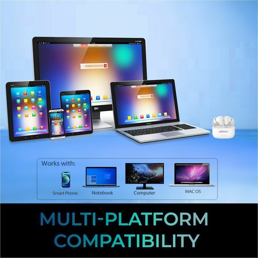 Erleben Sie ultimative Audiofreiheit mit den Adesso Xtream T2 Wireless Earbuds. Dank fortschrittlicher Bluetooth 5.3-Technologie sorgt die Ohrhörer für nahtlose, zuverlässige Konnektivität und verlustfreien Klang. Diese kabellosen Stereo-Ohrhörer verfügen über zwei Mikrofone und aktive Geräuschunterdrückung und sorgen so für kristallklare Gespräche auch in lauten Umgebungen. Dank ihres kompakten Designs sitzen sie perfekt in Ihren Ohren und bieten ganztägigen Tragekomfort. Steuern Sie Ihre Musik und Anrufe mühelos mit der intuitiven Touch-Bedienung.