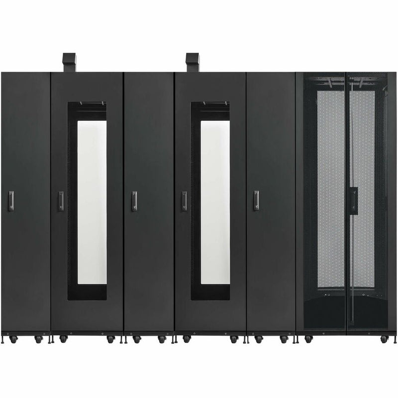 Die beiden IT-Rack-Gehäuse des SRP-2R-3C12-M bieten jeweils Platz für bis zu 44 HE Rack-Geräte auf integrierten Schienen. Drei Kühlgehäuse sind mit schlanken 12-kW-Reihenkühleinheiten (SRCOOLDXRW12) ausgestattet, um Geräteausfälle durch Überhitzung oder Temperaturschwankungen zu vermeiden. Zusammen bilden die IT-Rack-Gehäuse und die Rechenzentrumskühlgehäuse ein effizientes, geschlossenes Kühlsystem.
