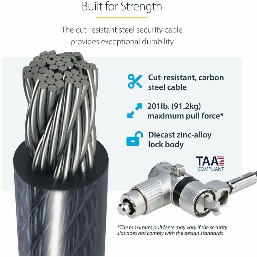 StarTech.com 25er-Pack Universal-Laptopschloss 2 m, Hauptschlüssel-Verriegelungskabel, Sicherheitskabel, kompatibel mit Noble Wedge®/Nano/K-Slot