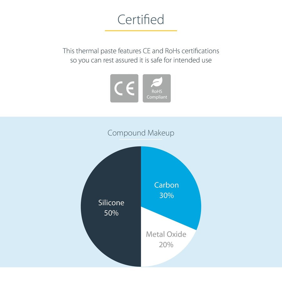 Diese Wärmeleitpaste verbessert in Kombination mit einem Kühlkörper die Wärmeableitung von integrierten Computerchips wie CPUs. Die Wärmeleitpaste ist CE- und RoHS-zertifiziert und somit für den vorgesehenen Einsatzzweck sicher.