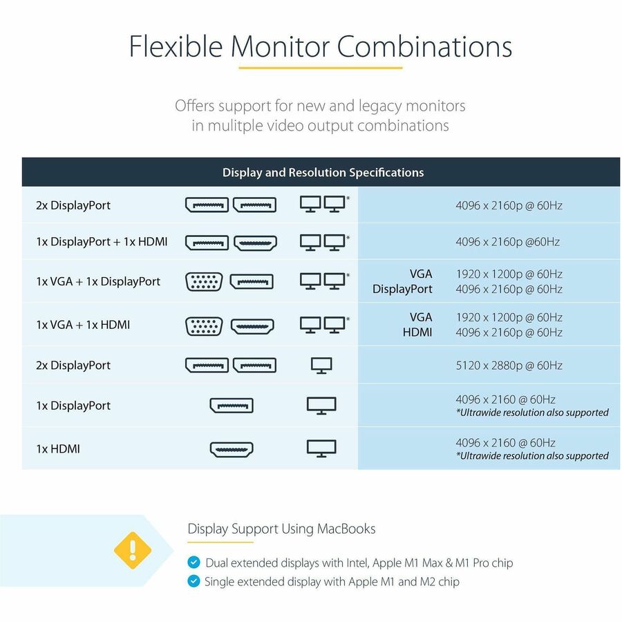 - FLEXIBLE MONITORAUSGÄNGE: Schließen Sie bis zu zwei externe Monitore für bis zu duales 4K-Video mit einer beliebigen Kombination aus 2x DP (4K 60 Hz), 1x HDMI (4K 60 Hz) oder VGA (1080p 60 Hz) an. Die Videoausgabe nutzt die direkte GPU-Leistung ohne Software oder Komprimierung.