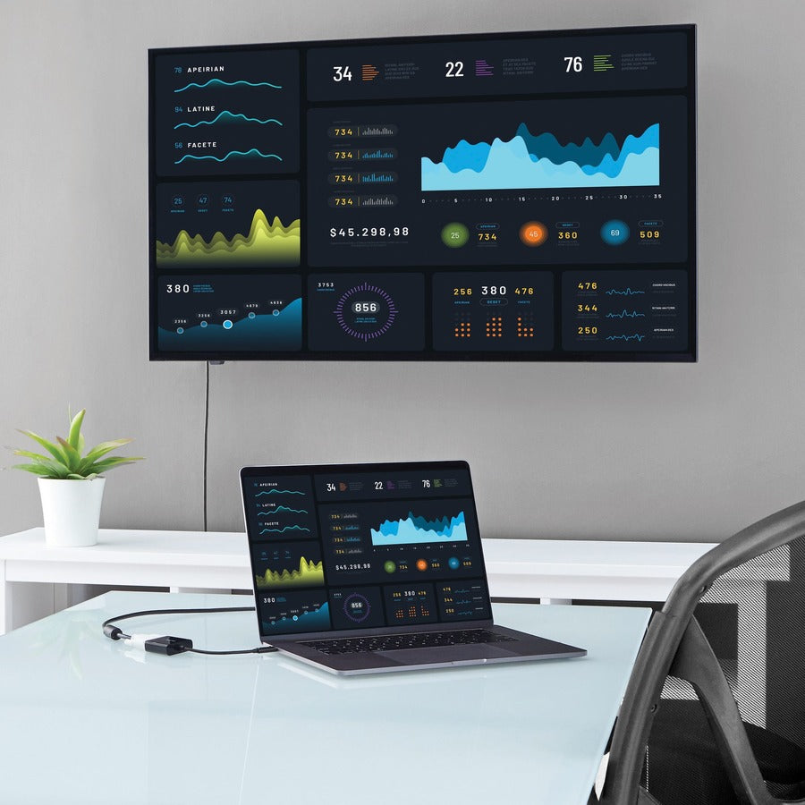 Dieser USB Type-C™-Videoadapter ist äußerst mobil, hat einen geringen Platzbedarf und ein leichtes Design. Er ist das perfekte Zubehör für Ihr MacBook oder Chromebook und passt problemlos in Ihre Laptoptasche oder Tragetasche. Ideal für BYOD-Anwendungen (Bring Your Own Device) im Büro.
