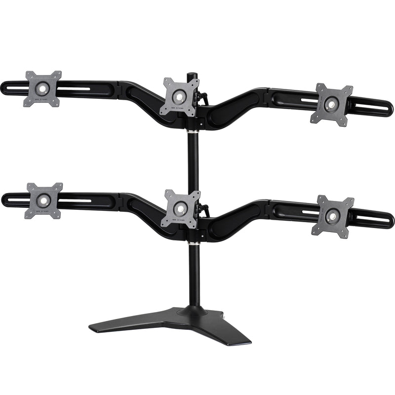 Este producto increíblemente versátil admite hasta seis monitores de 24", cada uno con un peso individual máximo de 13,2 lb. Este soporte resistente y robusto no solo soportará sin problemas monitores con certificación VESA de 75x75 o 100x100 (que cumplen con los criterios mencionados), sino que también es extremadamente ajustable.